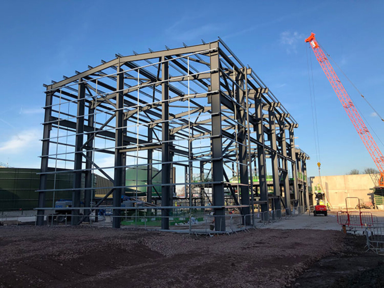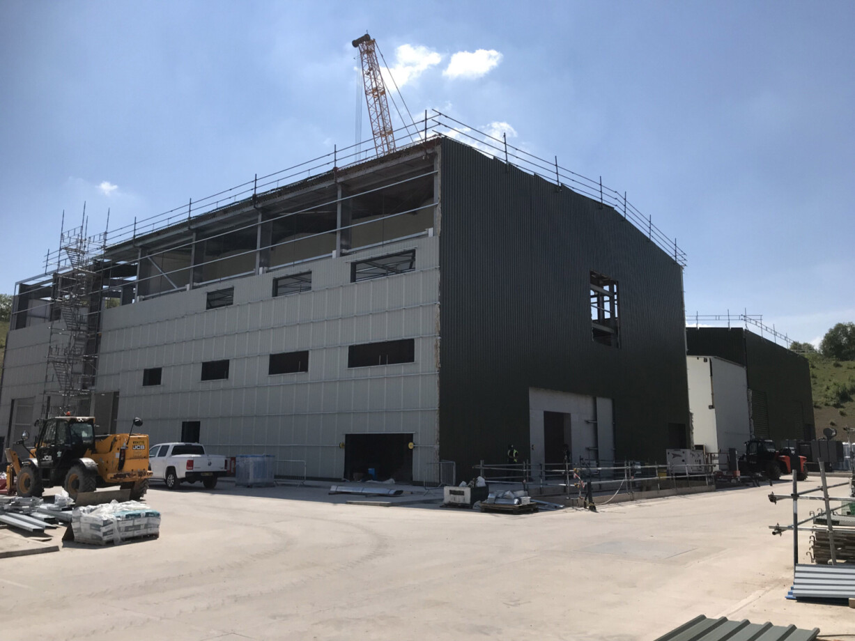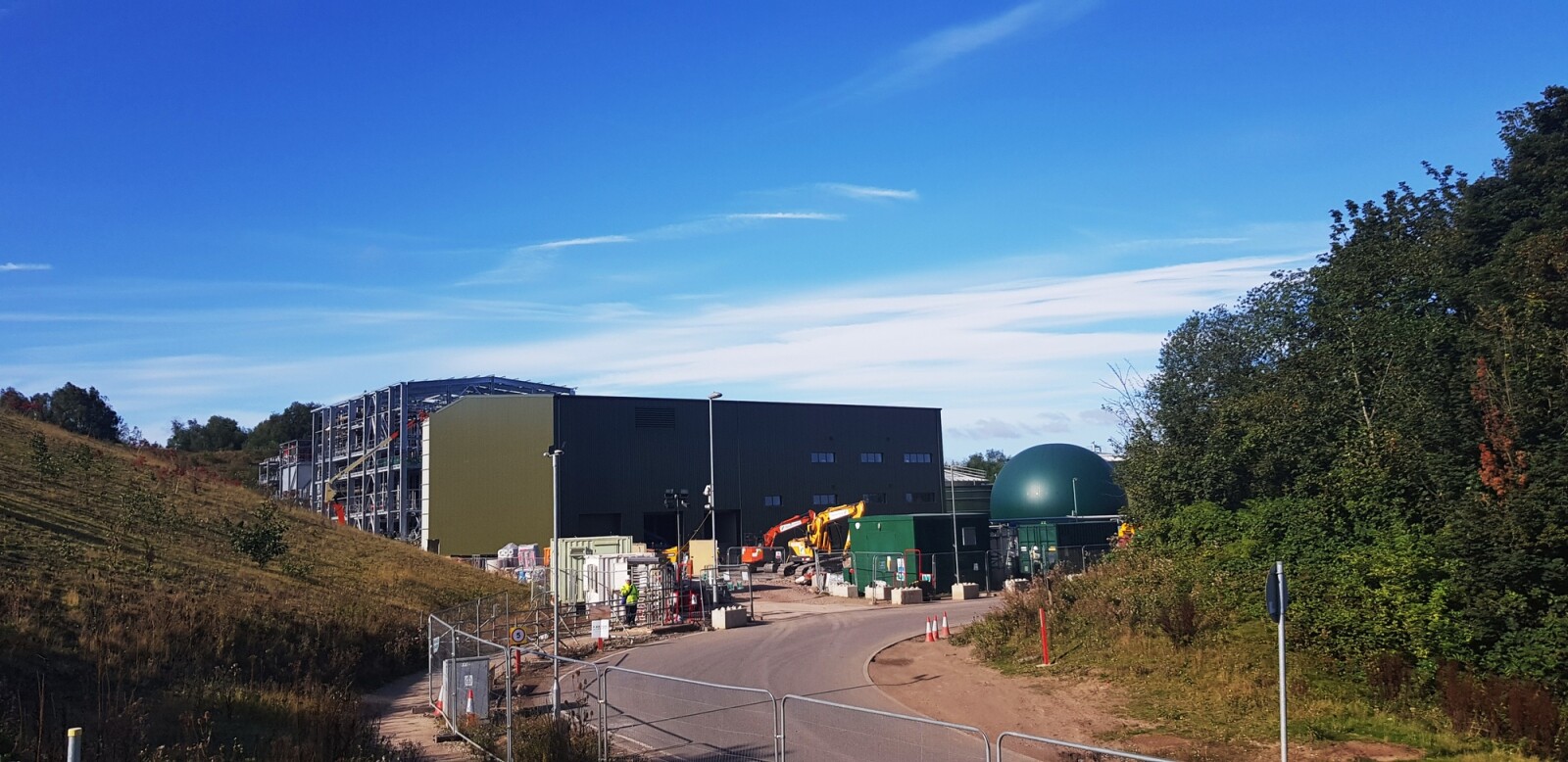 including a boiler, turbine, chimney stack, and flue-gas treatment