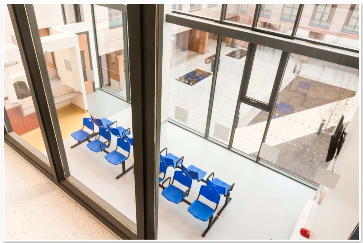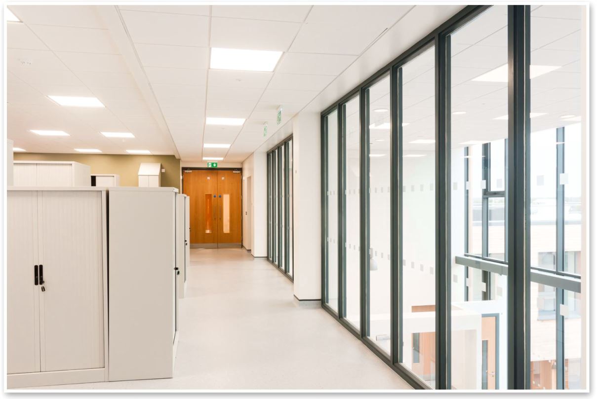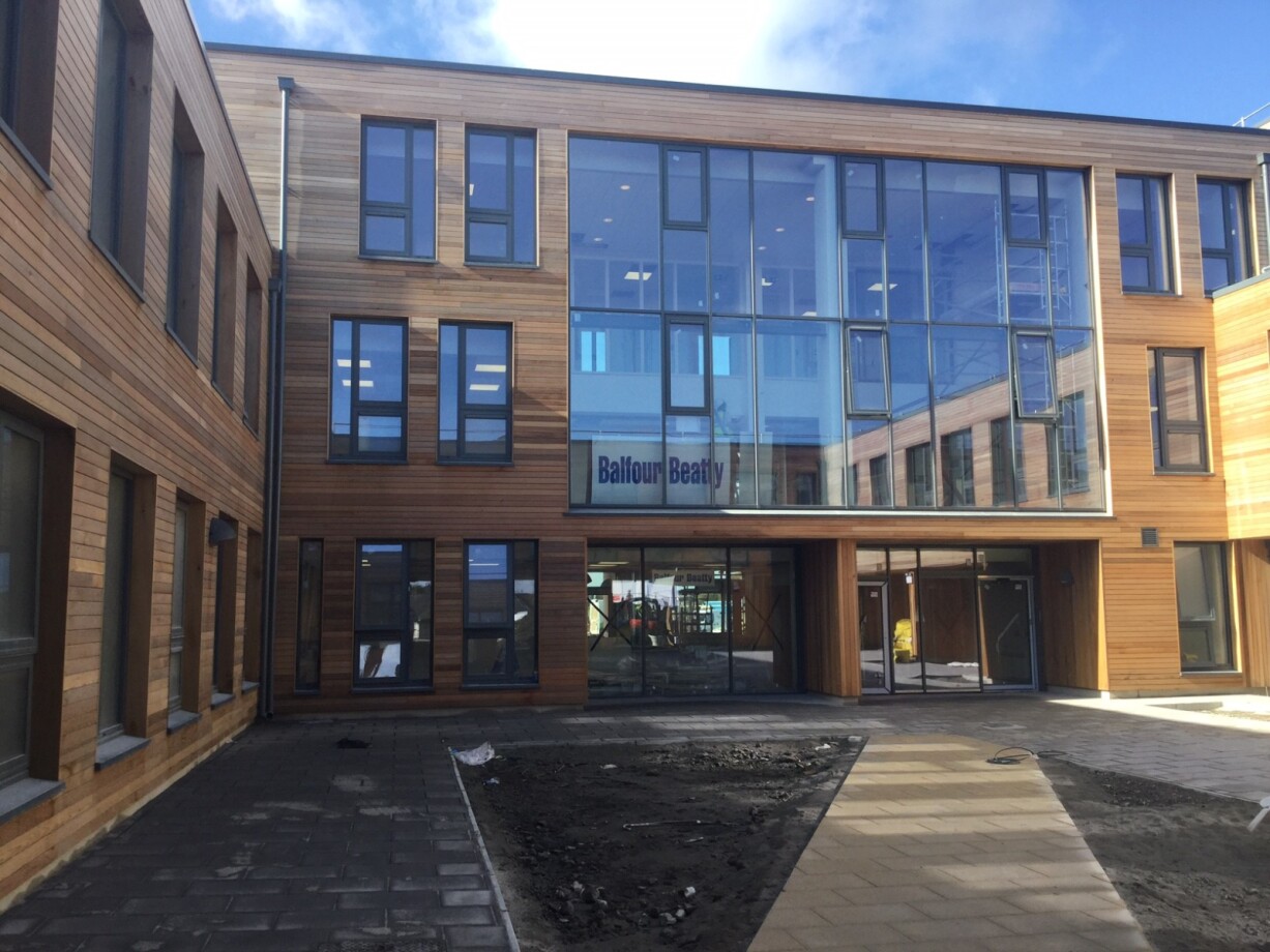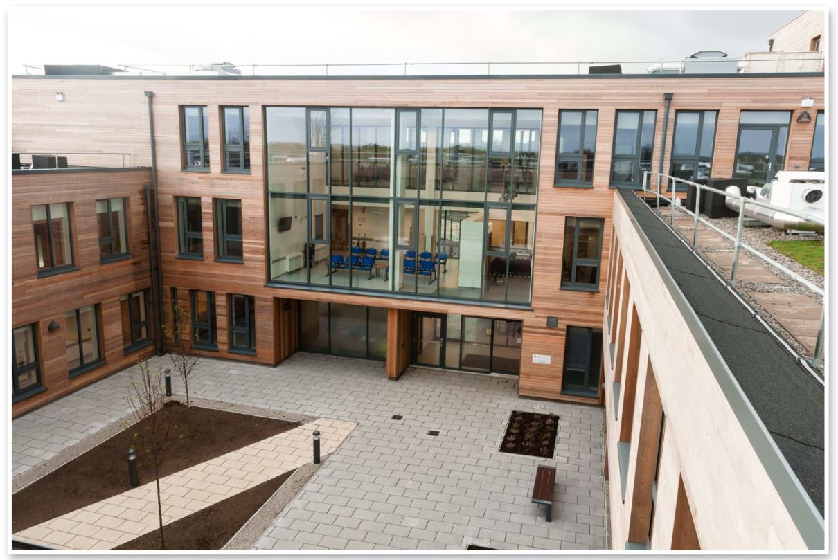 The two storey building is designed around a central courtyard and includes surface car parking, a landscaped garden and a new access road.