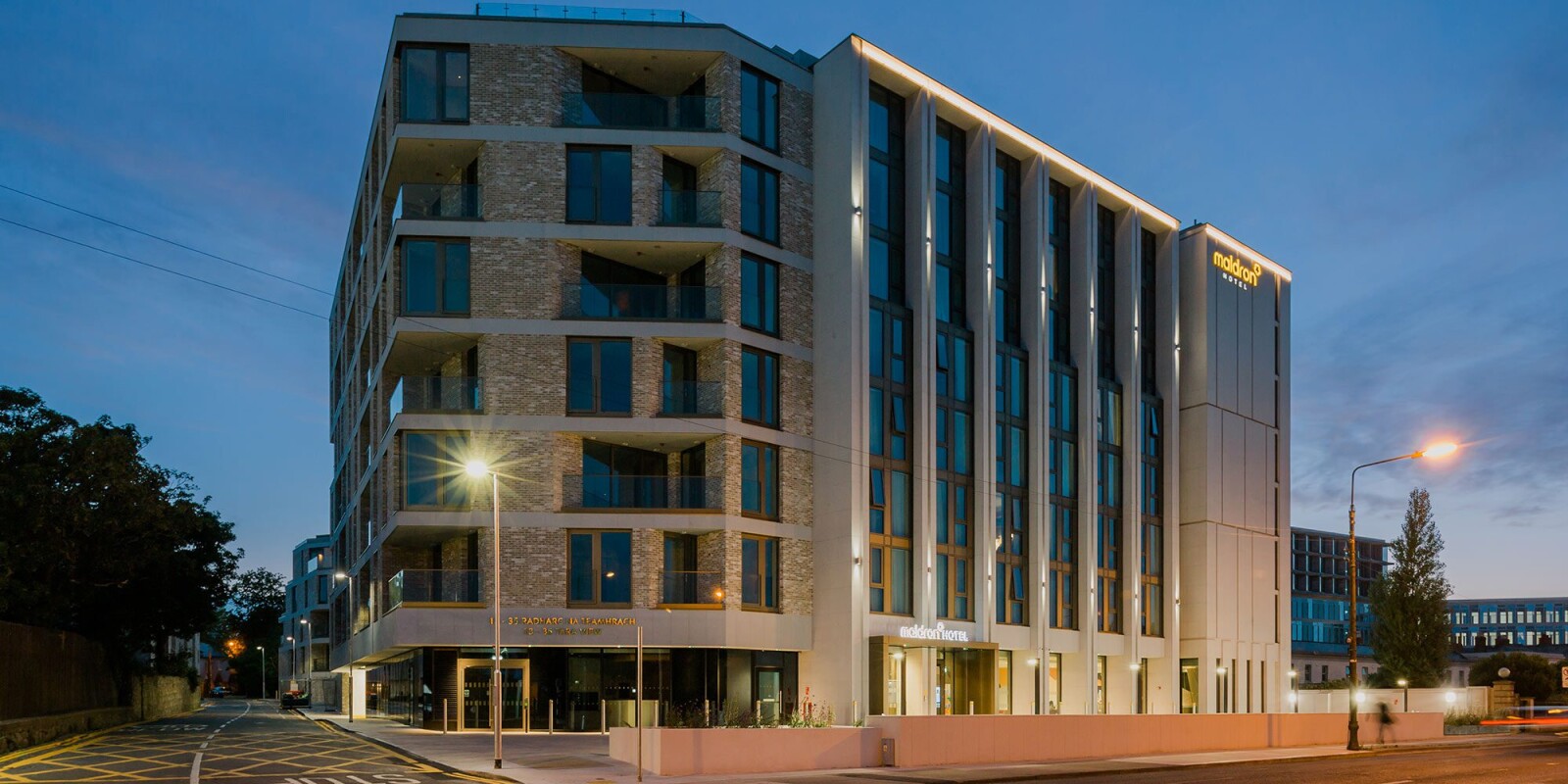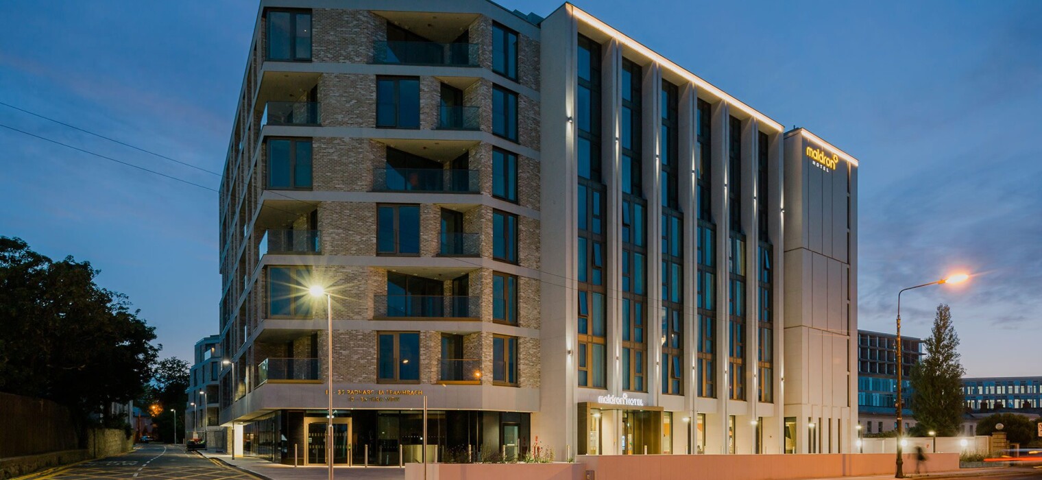 The Maldron Hotel development proposes a replacement for the now outdated Tara Towers Hotel on Merrion Road in Dublin 4 and development of the remainder of the site with a scheme of apartments and townhouses. The site occupies a prominent and dramatic bay-side position overlooking Booterstown Marsh and Dublin Bay towards Howth Head.