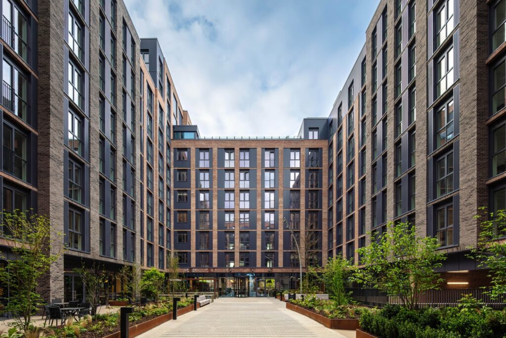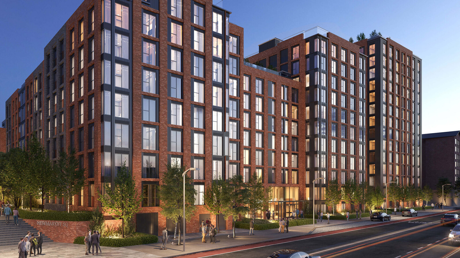 The development consists of a Specific BTR (Build to Rent) Development comprising 413 units and associated resident support facilities and amenities accommodation (totalling 30,465sqm) arranged around a courtyard and an internal street. This includes 5no. rooftop terraces for residents including a lounge, terrace, gym terrace, social terrace, spa terrace and biodiversity terrace. The development includes 4no. independent retail units on Newmarket comprising a 1no. café (213sqm) and 2no. retail units (479sqm) and an artists’ studio (216sqm). The basement level includes 50no. car parking spaces and cycle parking facilities. The total gross floor area is 31,373sqm. The building ranges from 6 storeys (including set-back level) to Newmarket Square stepping to 9-13 storeys towards St. Luke’s Avenue.