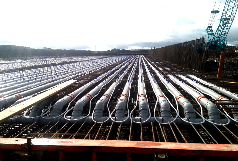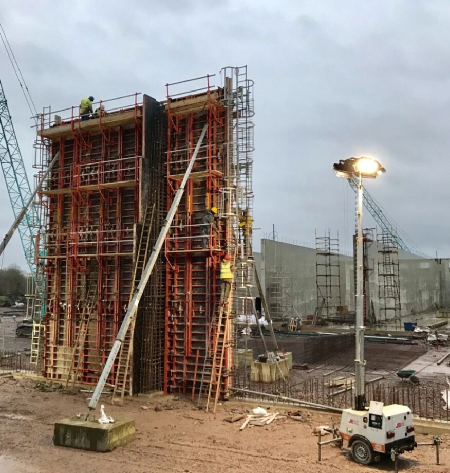 Phase 1 composting bunker building consisted of 5no. reinforced concrete bunkers 9mx9m in section x 55m long opening into a 30metre clear span filling hall 80metres long x 13m high, climate corridor for housing of air handling plant feeding into each bunker and an adjacent Scrubber room & bio-bed buildings for removal of odours and cleaning of waste air. Phase 2 composting building connected at high level via conveyors to the Phase 1 building for further processing of the compost. 105m x75m clad building x13metres high max, with duo-pitch roof covering 21no ‘tunnels’ 4.0m wide x 4.5m high x 43m long for processing of compost, opening into a 17m wide clear span filling hall and a 13m wide clear span emptying hall with full length 105m truck pit set down for loading of lorries from the high-level conveyors.