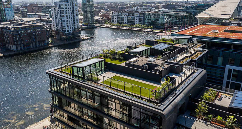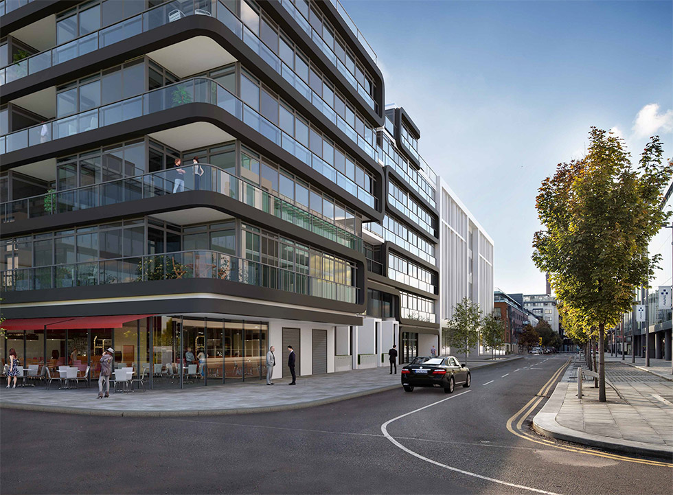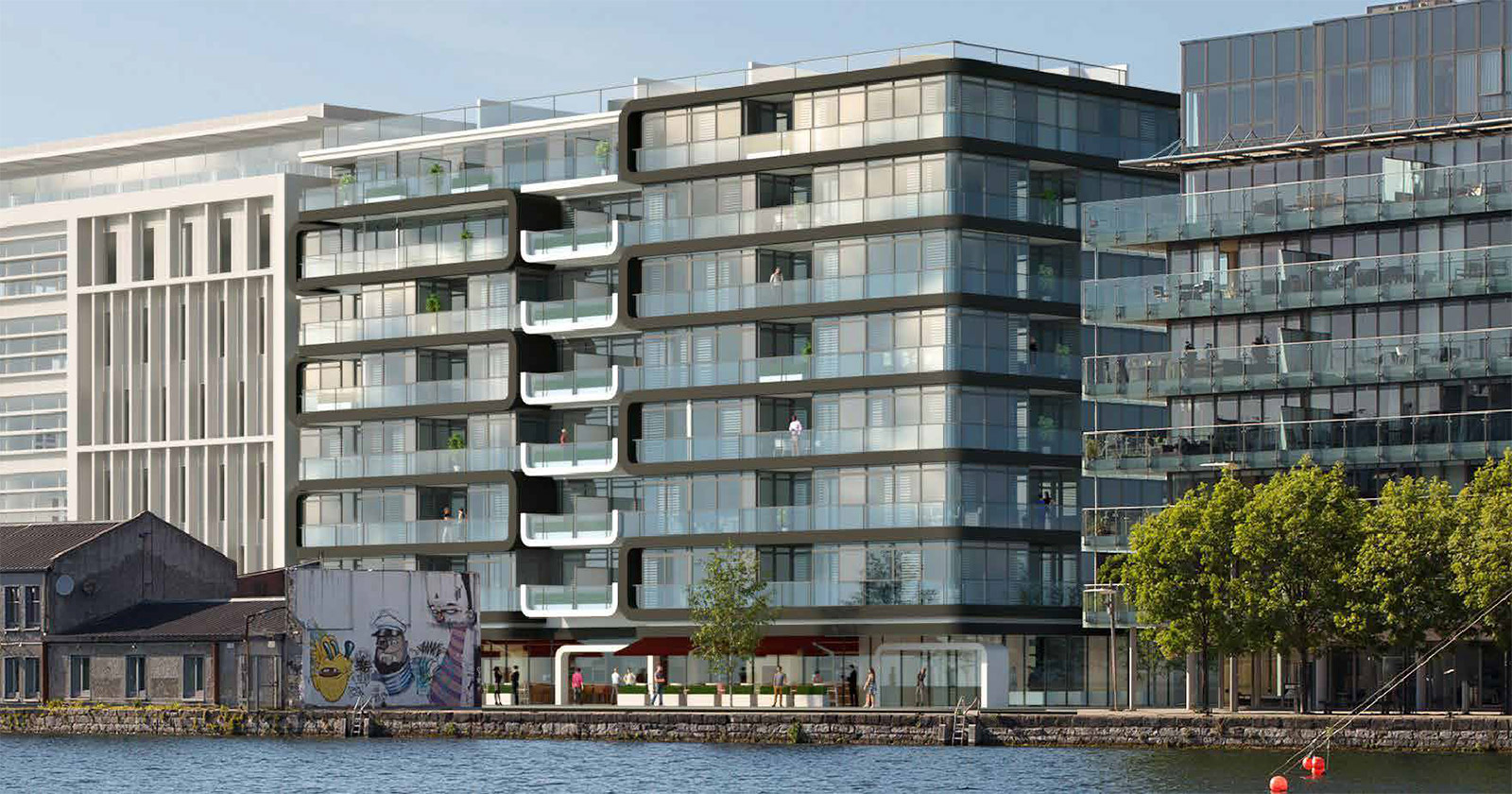 The 122 apartment development at Opus No.6 Hanover Quay consists of an eight storey residential development over a single level basement. The ground floor is made up of both commercial units and two-storey residential duplex apartments.