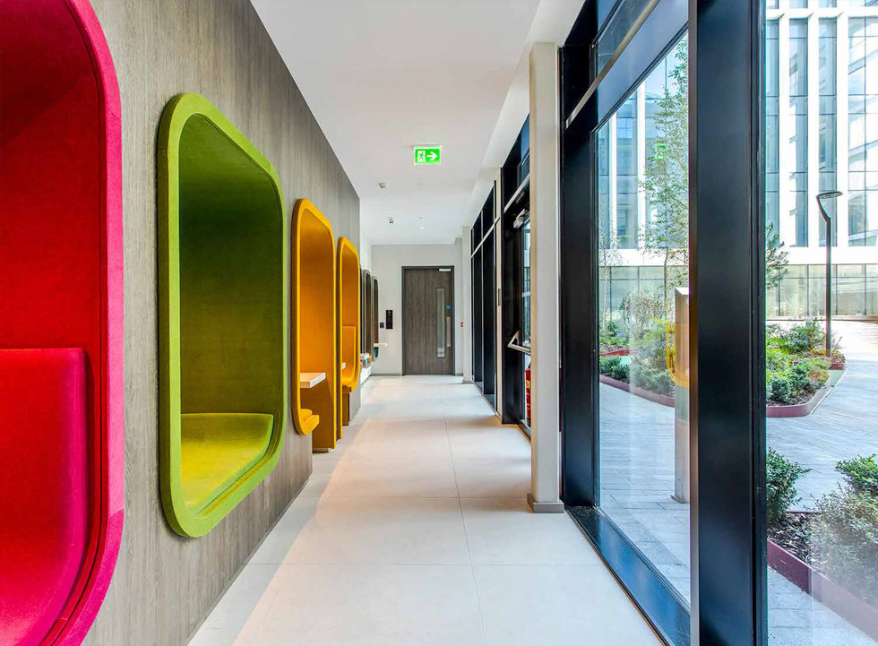 Ground floor and basement level are constructed in an insitu concrete frame with external tanking system founded on precast driven piles. From ground floor upwards, the vertical structure consists of precast concrete columns and a precast twinwall system for the stair cores. The horizontal floor plates are a unique post-tensioned concrete slab that include transfer beams to accommodate the different column arrangements at ground floor and changing apartment layouts.