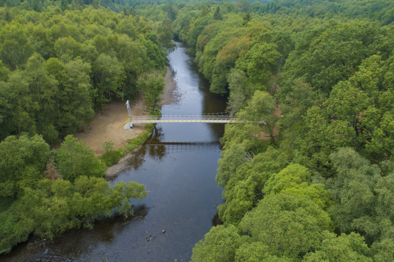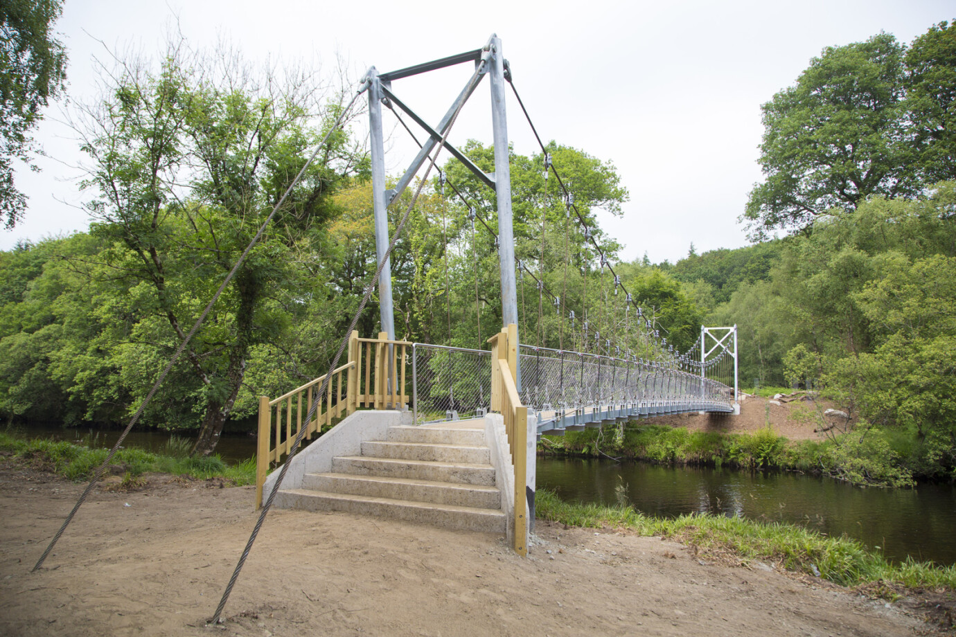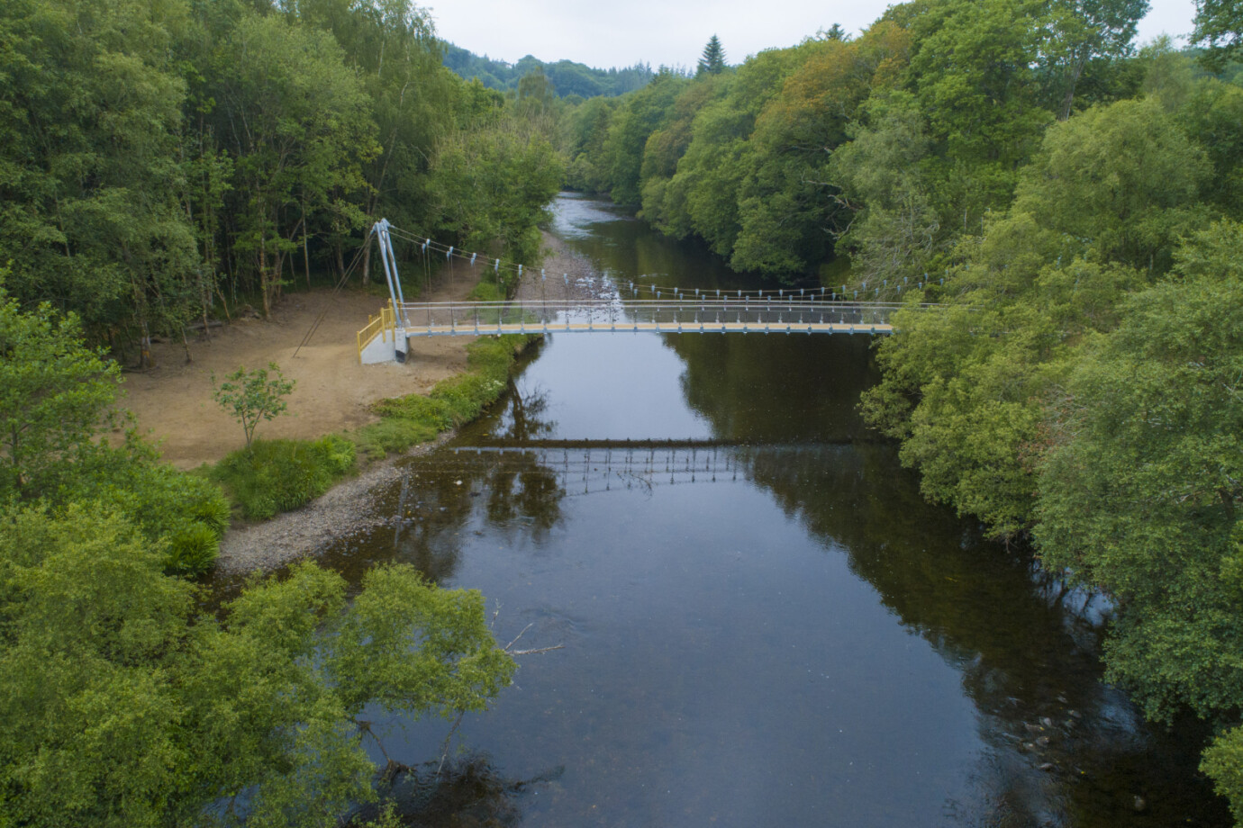 The linking of the Jubilee way and Avonmore way walking trails had long been an aspiration in Wicklow County Council and in early 2019 detailed consideration was given to where it might be best located, what it might look like and what the lightly costs might be. Architect Padraig Smith Partnership and Barrett Mahony Consulting Engineers were given a brief to examine the options for location and to develop outline proposals. The river banks were examined to take account of existing tree profiles on the banks and to look at the configuration of the existing river bank walking trails etc in an effort to determine the optimum crossing point. Many other considerations fed into this assessment, such as the accessibility for construction, the requirements for protection of fisheries habitat, river flow and flood levels and general river hydrology as well as the special area of conservation (SAC) issues associated with the woodland setting.